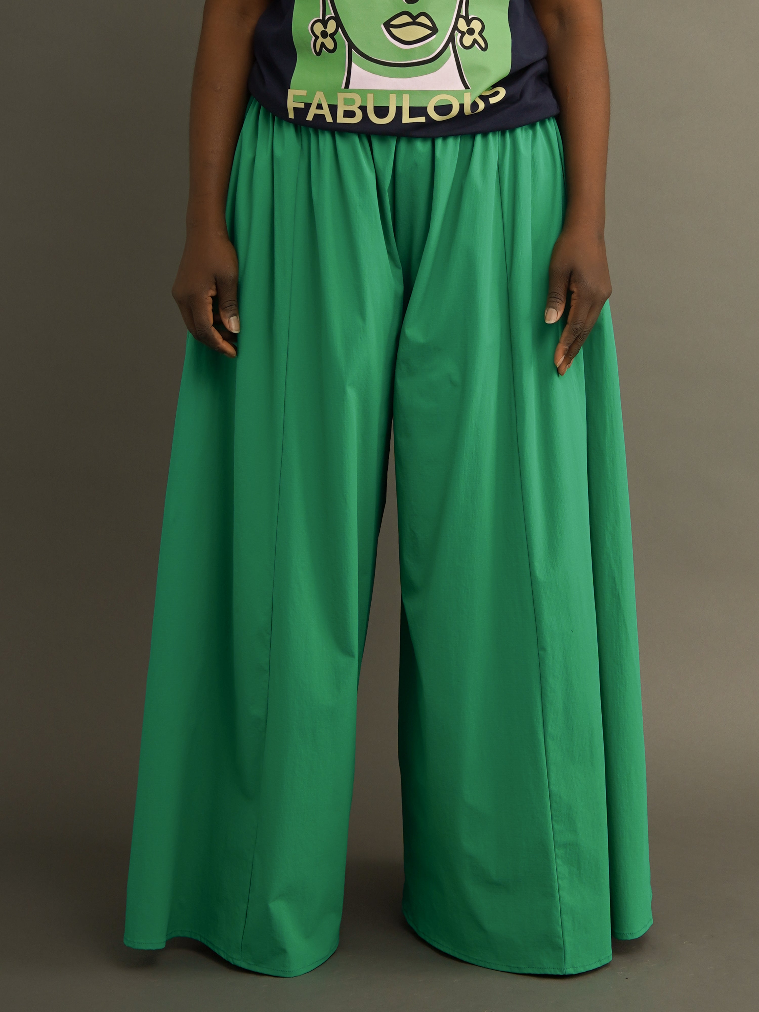 A modern classic with a vintage twist. The Charlie Green Palazzo Pants are crafted from lightweight nylon-spandex with a soft cotton lining—think retro athleisure, reimagined for today. The oversized, wide-leg fit offers movement, shape, and ease.