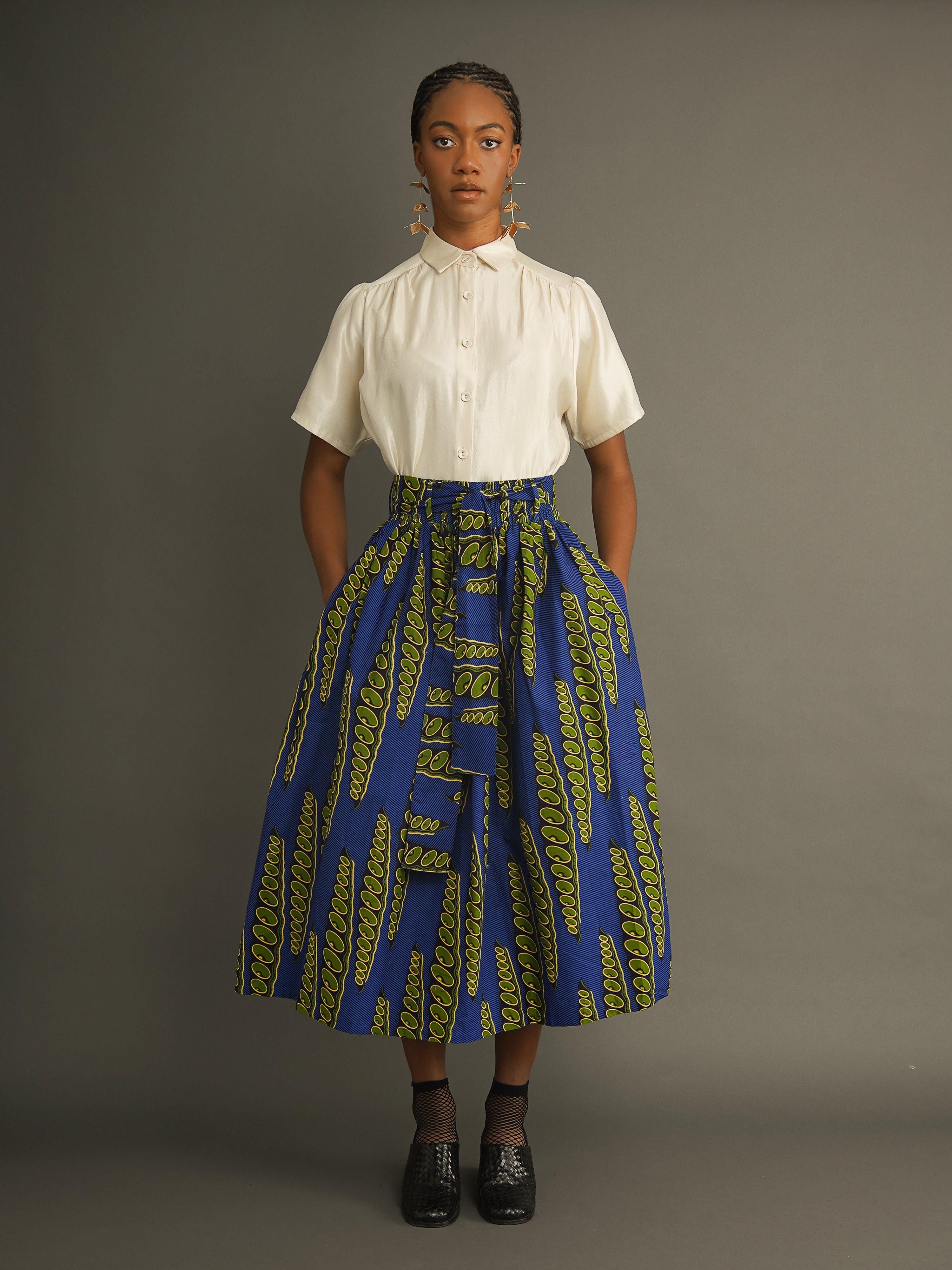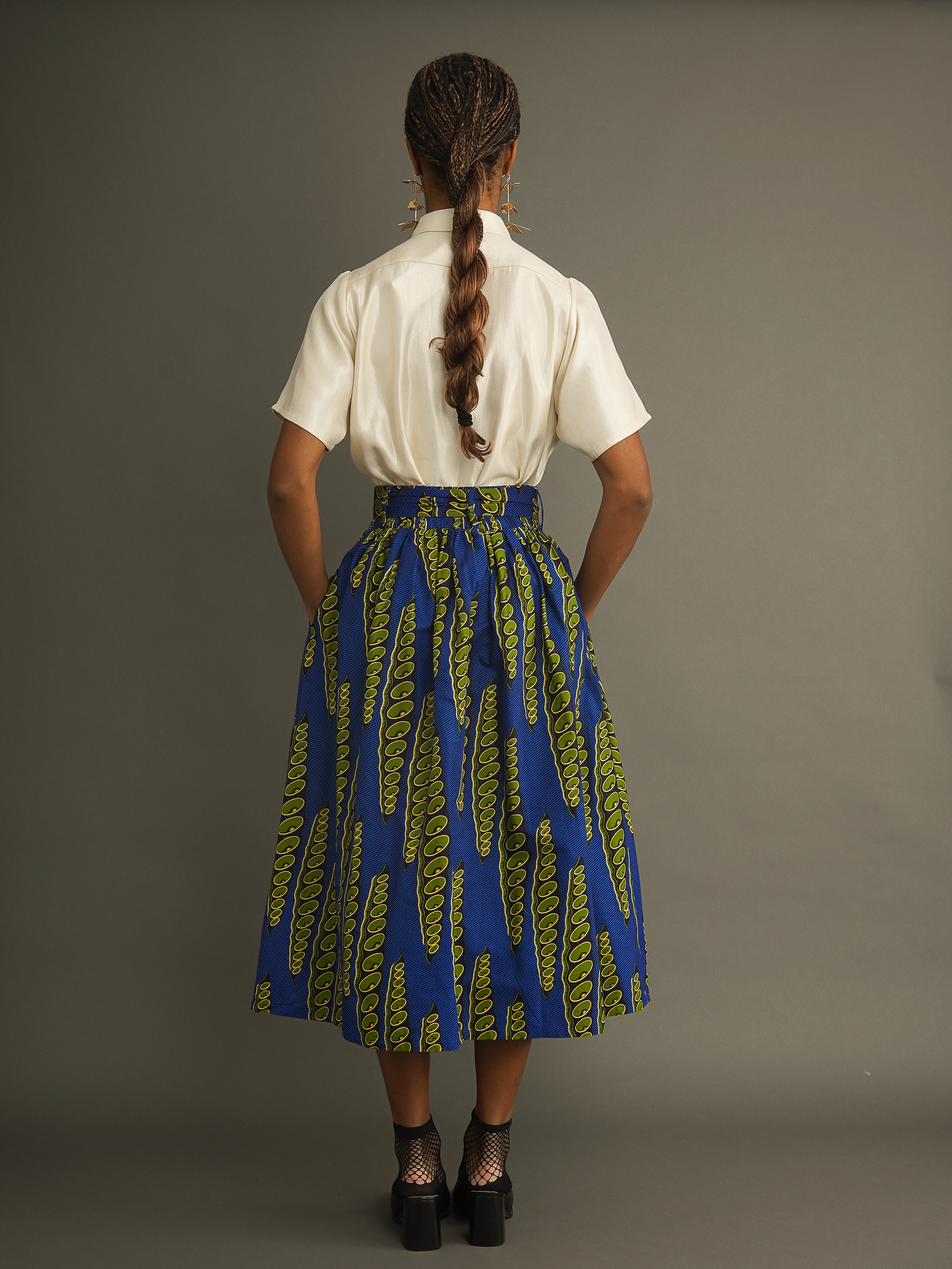 Masumi Cotton Midi Skirt – Structured Dutch Wax Cotton
