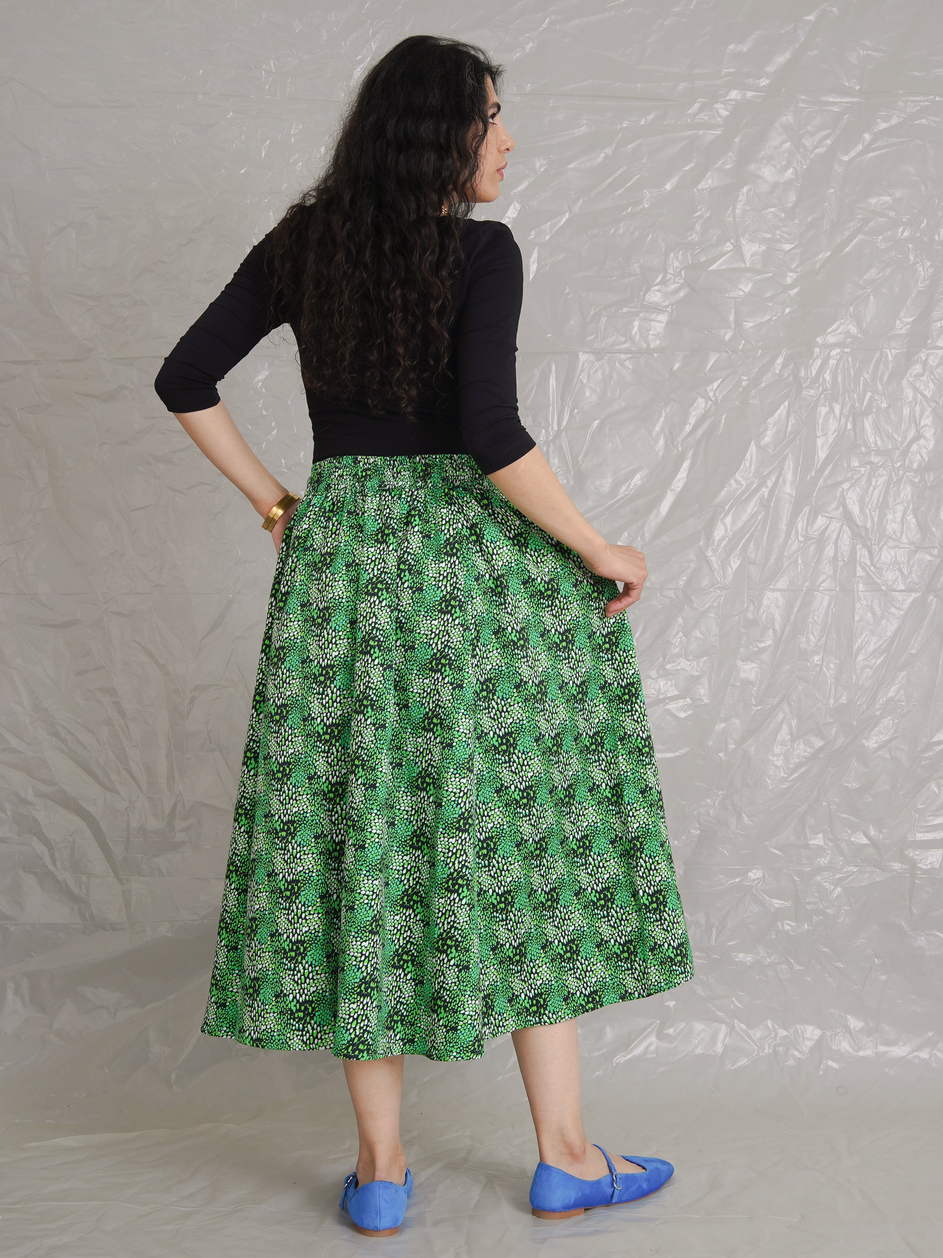 Our Megan Green Midi Skirt is designed to fit and flatter. With a full, flowing silhouette and a soft, elasticated waistband with an adjustable drawstring, this skirt is made for comfort, confidence, and compliments.