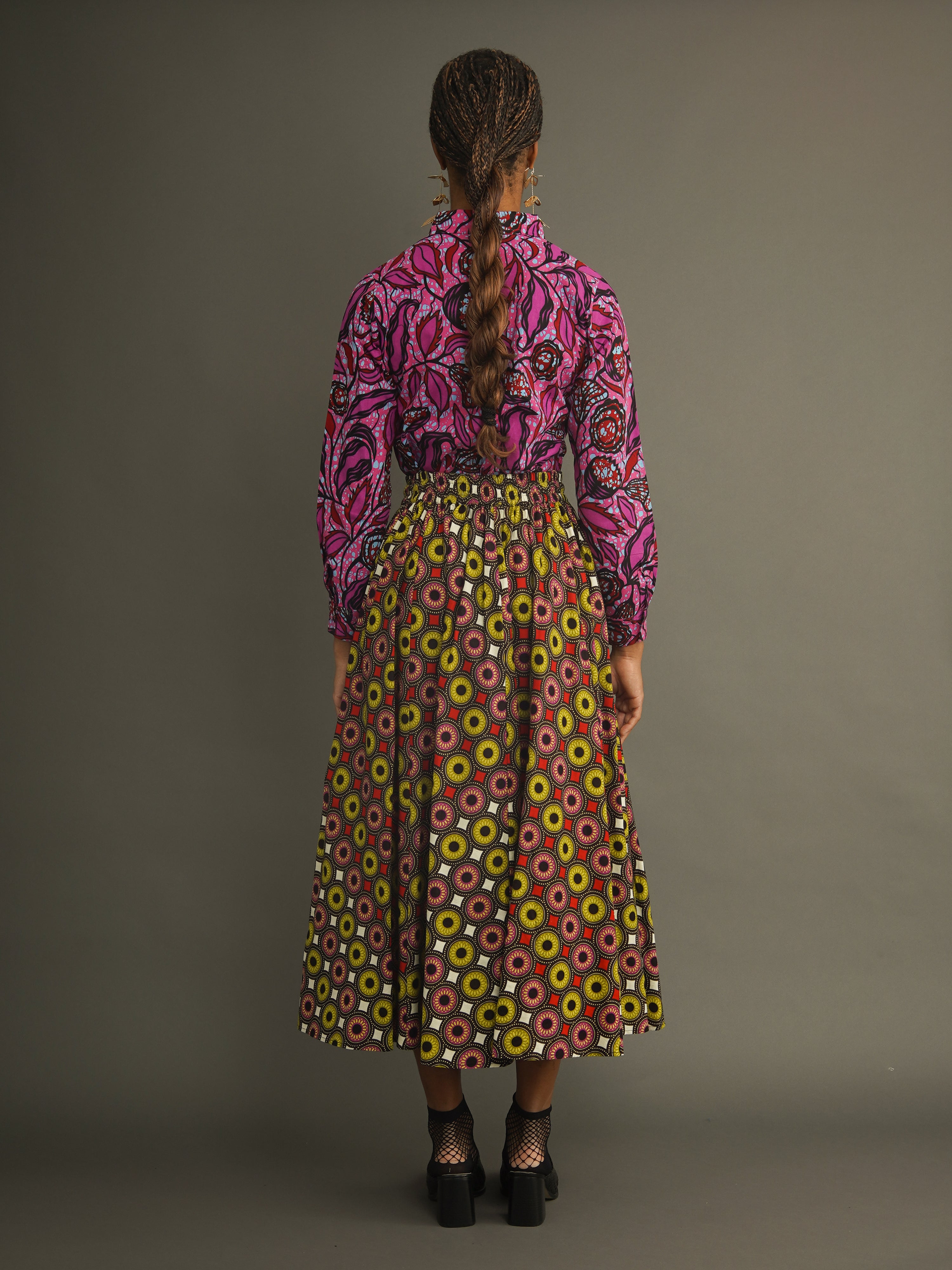 Our October Midi Skirt is designed to fit and flatter. With a full, flowing silhouette and a soft, elasticated waistband with an adjustable drawstring, this skirt is made for comfort, confidence, and compliments.