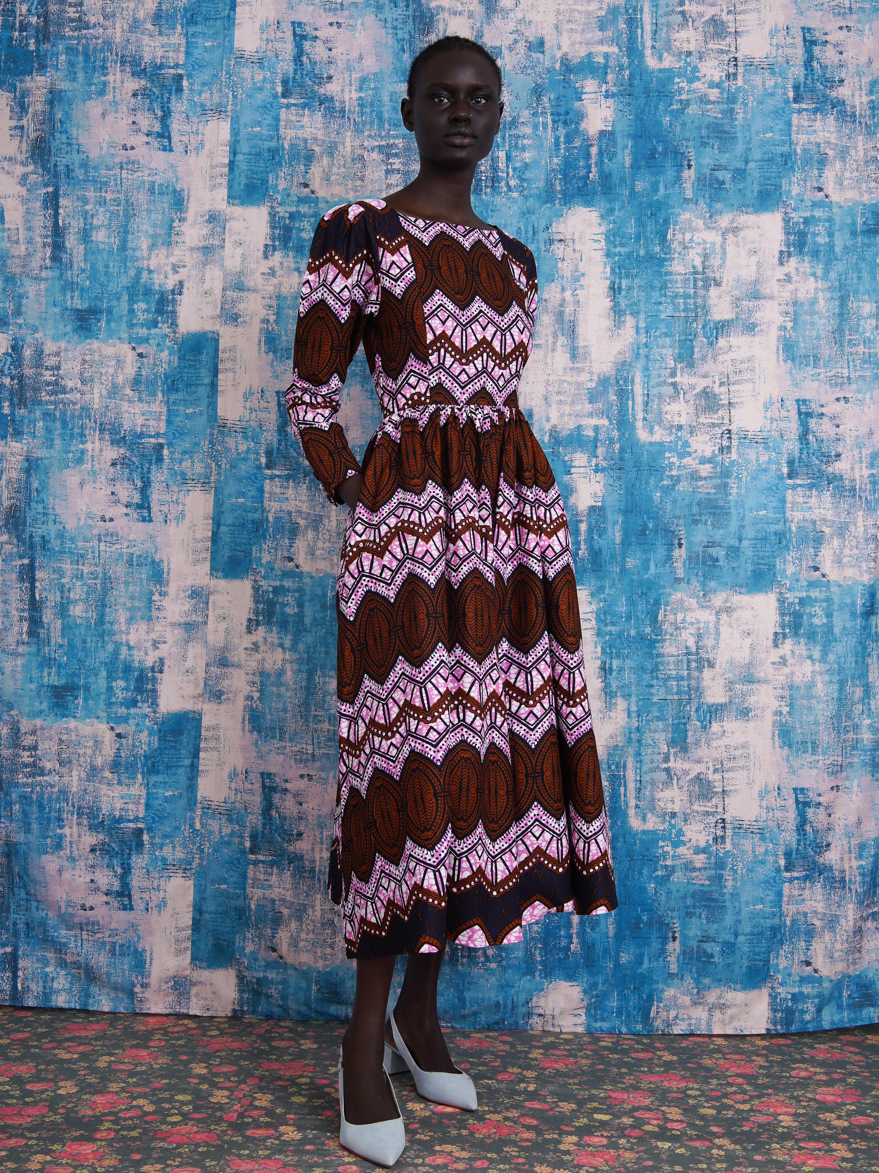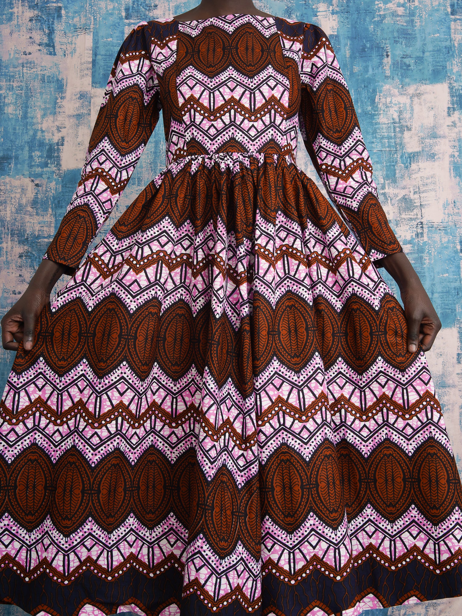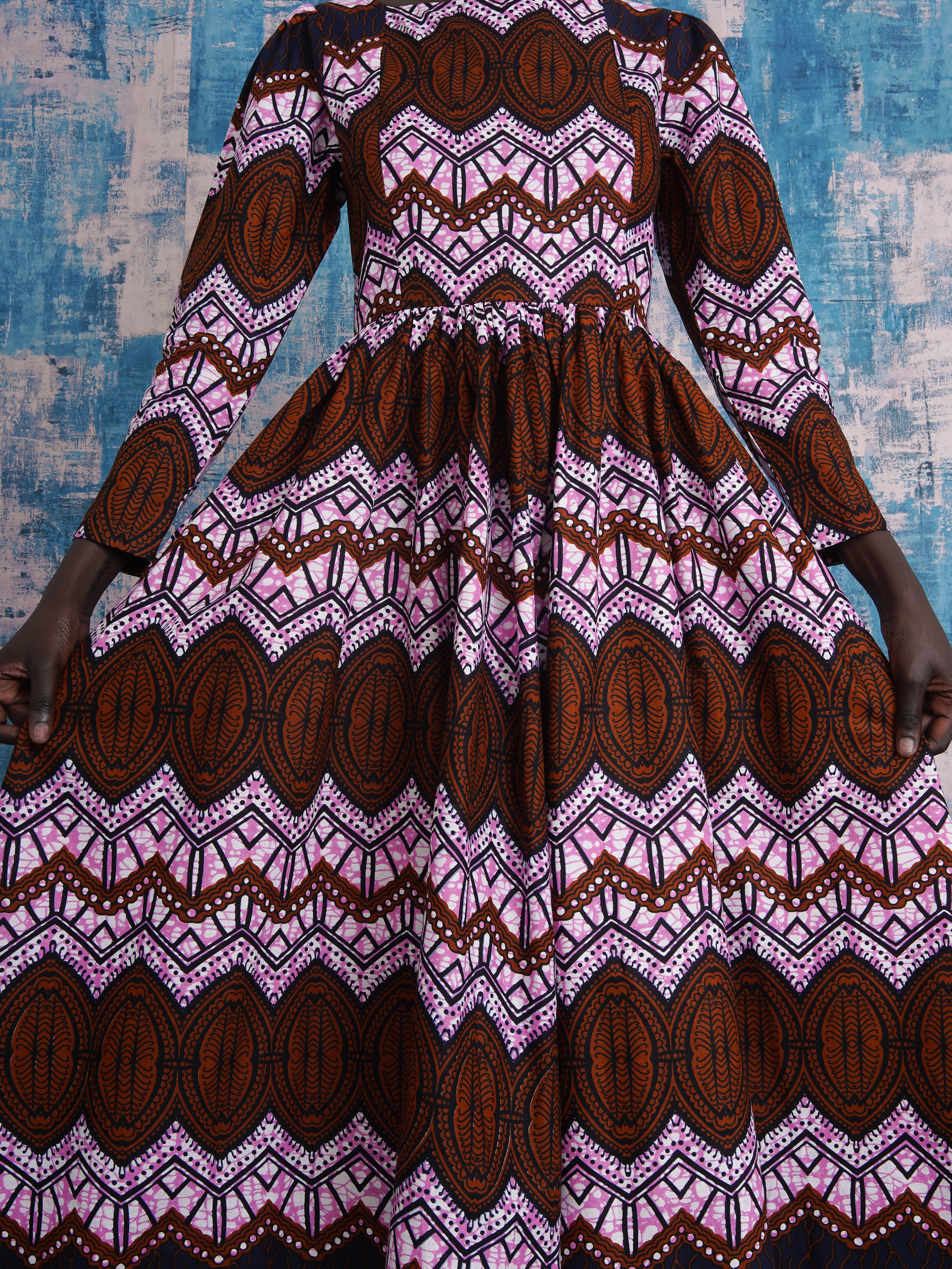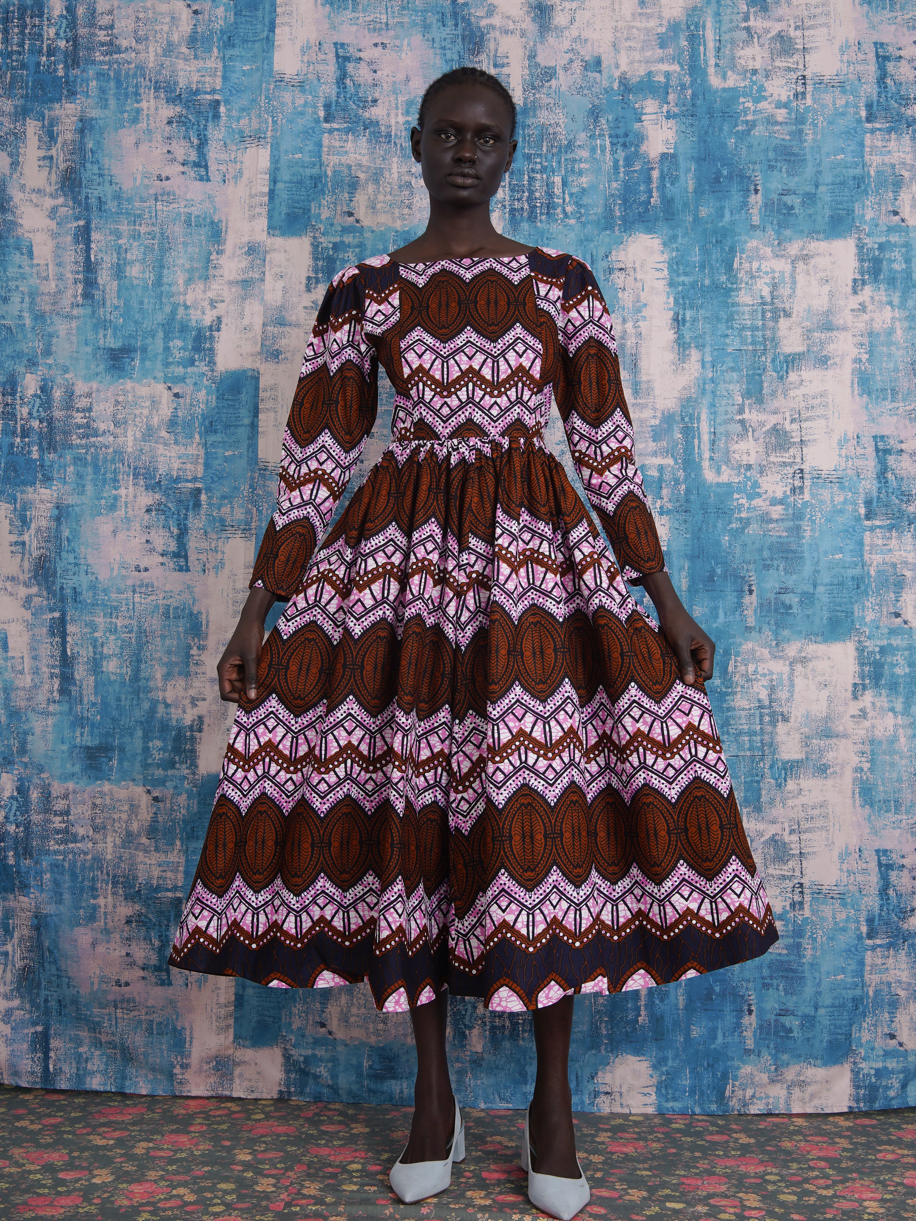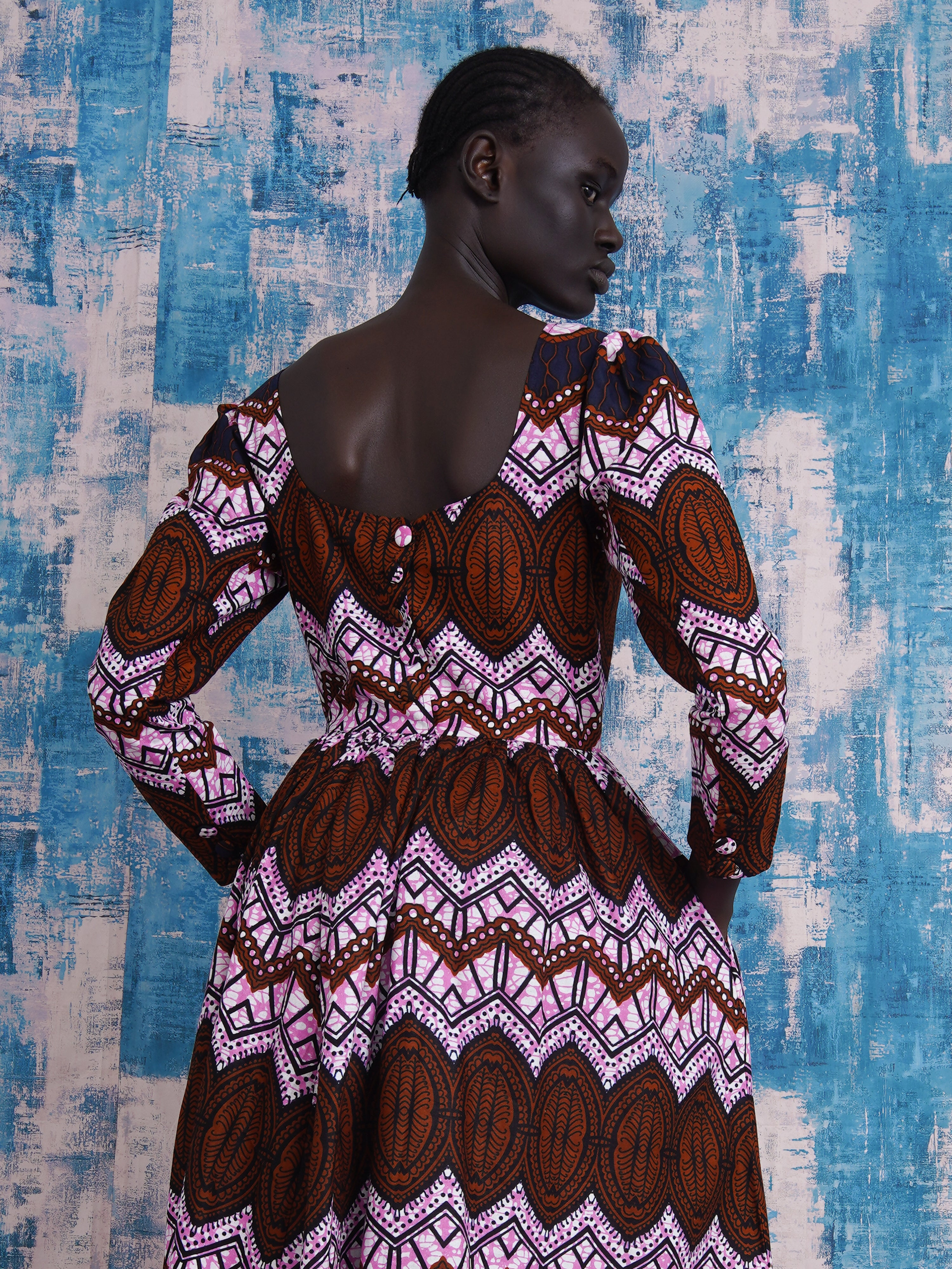 Introducing the Balogun Dress by Kemi Telford — a piece where sophistication meets romance. Crafted in a bold African-inspired print, this timeless silhouette combines a fitted bodice, puff sleeves, and a voluminous full skirt that moves beautifully with every step.