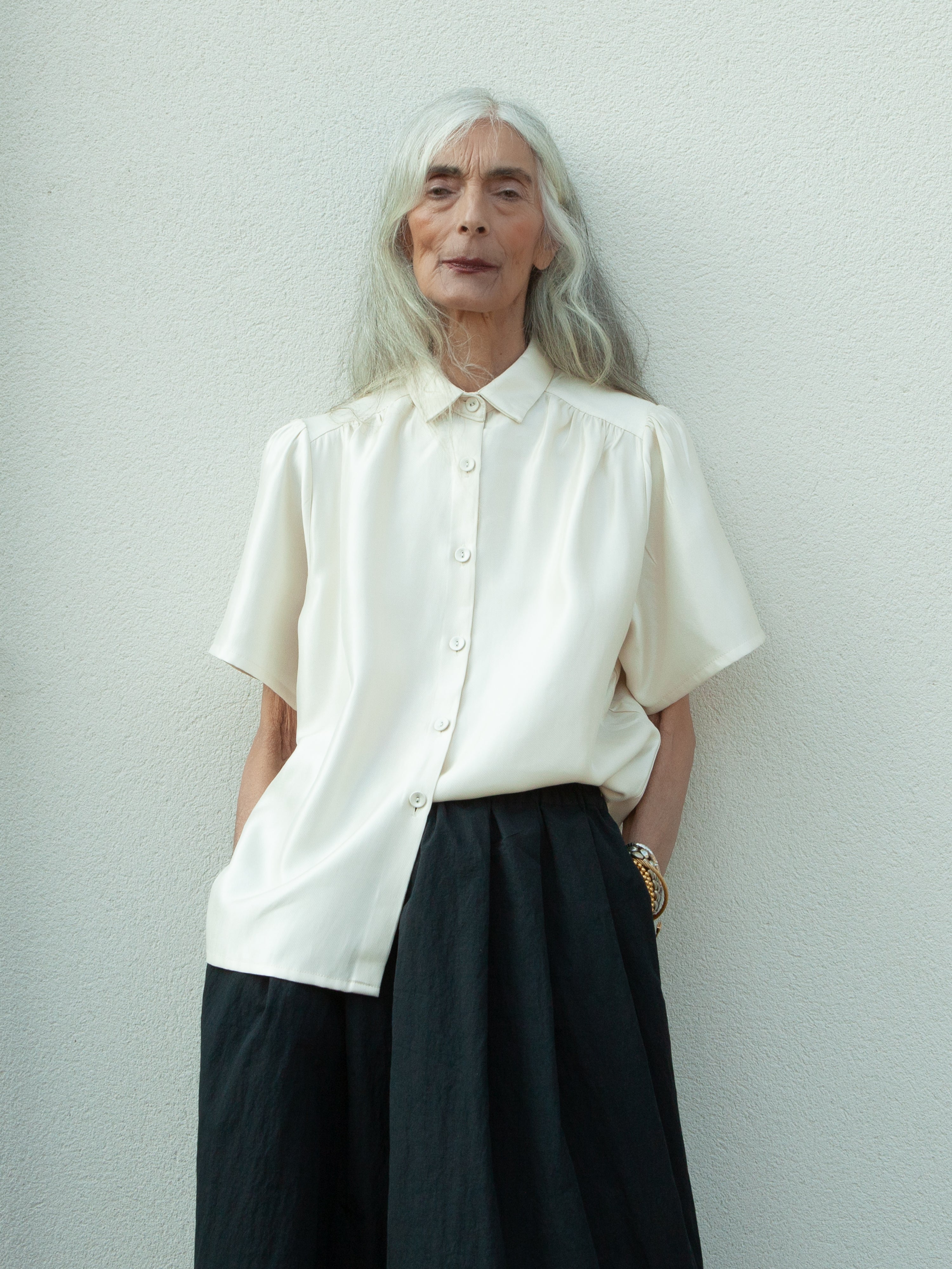 Relaxed yet structured, it can be worn loose, tucked into tailored trousers, or layered over a dress. A timeless wardrobe staple in limited numbers.